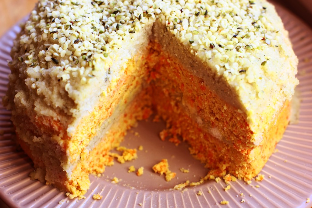 I personally love carrots, but I always postpone eating them just because it seems a little bit difficult to prepare them for being eaten. Other that that, I absolutely love enjoying salad mixes with carrots, carrot soups and spreads and recently I have also tried making a cake with carrots. I know it is a pretty well known recipe, but I have been a little reticent until now about trying it. I tried to make it only once, but it didn’t taste good at all, but this time it turned out pretty well. I think it was also the hemp cream that helped, as well as using coconut flour for the cake dough that made it really delicious and actually taste like a dessert recipe. The other time I tried to make this, it was the taste a carrot that was way to strong for a cake.