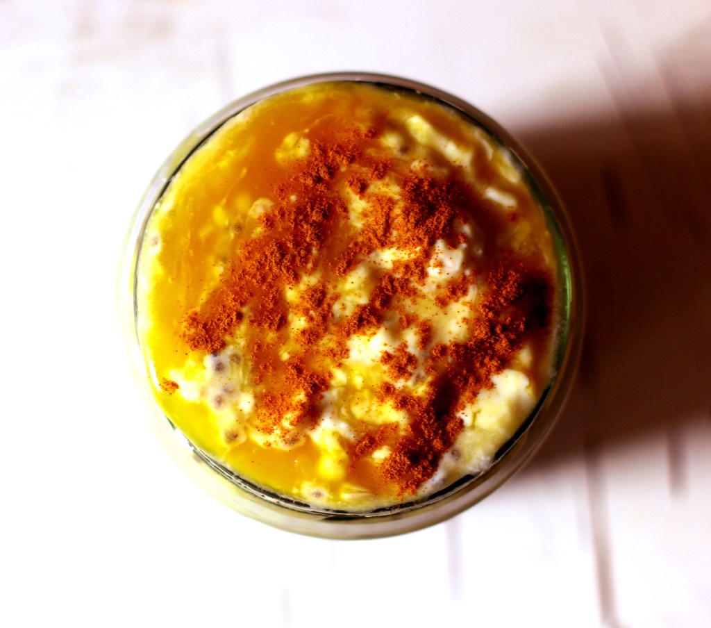 For this simple and easy to make recipe, we will only need a spoon to mix all the ingredients together. Then we will just have to wait for a few minutes for the chia seeds to adsorb the liquids and turn this delightful raw vegan recipe into a pudding like consistency. When our pudding is ready we can add some more mango or pureed mango on and sprinkle some cinnamon on top and our delicious and nutritious breakfast or dessert is ready to be served. Some coconut flakes or chopped nuts can also be added on top of our pudding or anything else that you might believe would be a delight for your own taste budds. Yum!