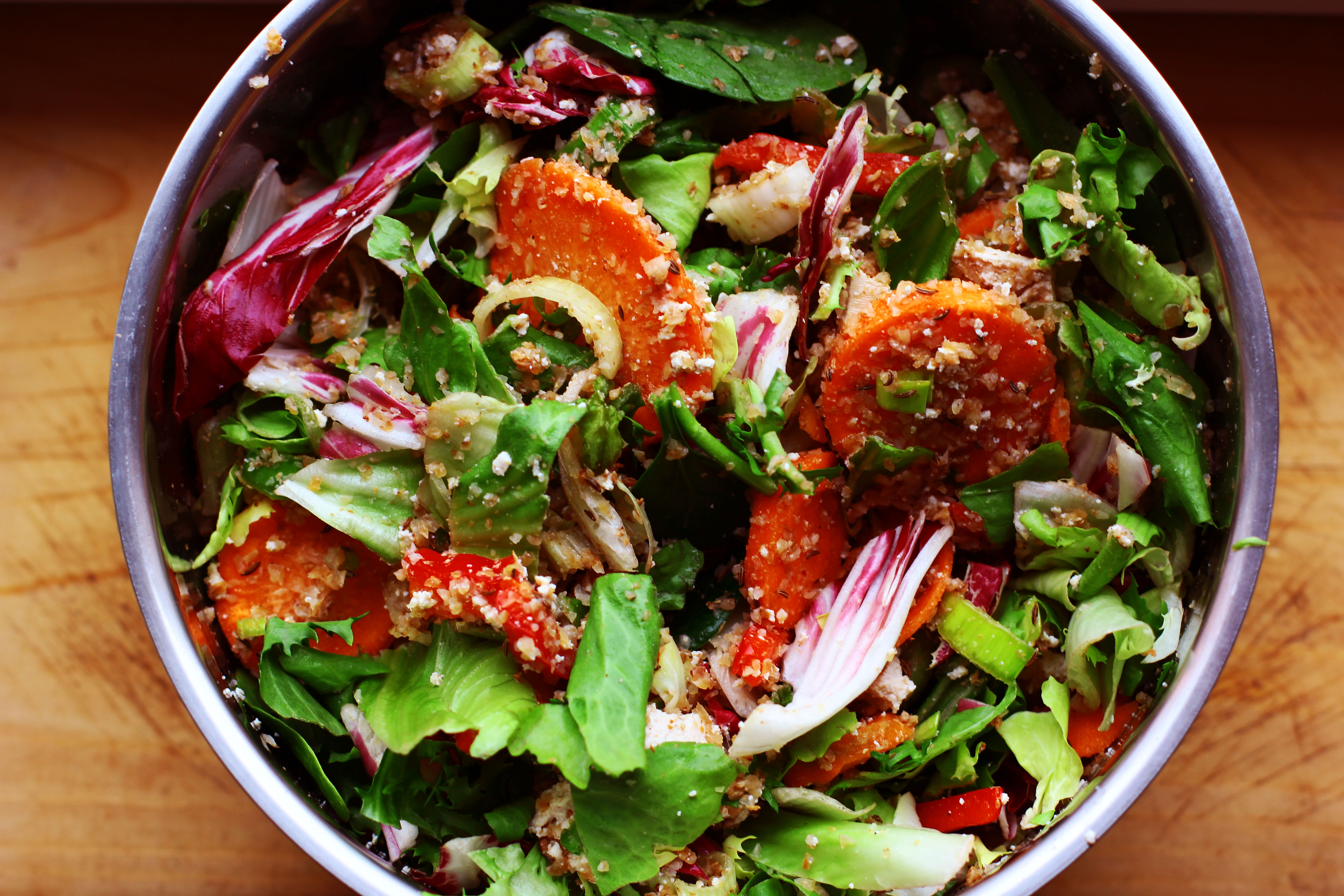 One of my favorite recipes to enjoy for lunch is of course making a big, colorful, super delicious and nutritious salad. This way I can integrate easily into my daily meals all kinds of veggies and greens, it is super quick and simple to make and it just tastes divine. Over the years I have tried all kinds of salads and combinations of veggies and greens and most of the times I would just add to them something like a mix of seeds or a nut or seed spread or a delicious and nutritious raw vegan dressing. Still, the basic salad mix remains pretty much the same in terms of the recipe, I might be using different types of greens or veggies from one day to another, in order to have variety both in terms of tastes, texture as well as nutritional value and benefits, but it is based on the same principles. This is why I have decided that today I want to share with you my ideas for a basic salad mix recipe and then of course, as always, feel free to improvise and create your own mix that best fits your own wishes, desires, taste buds and nutritional needs.