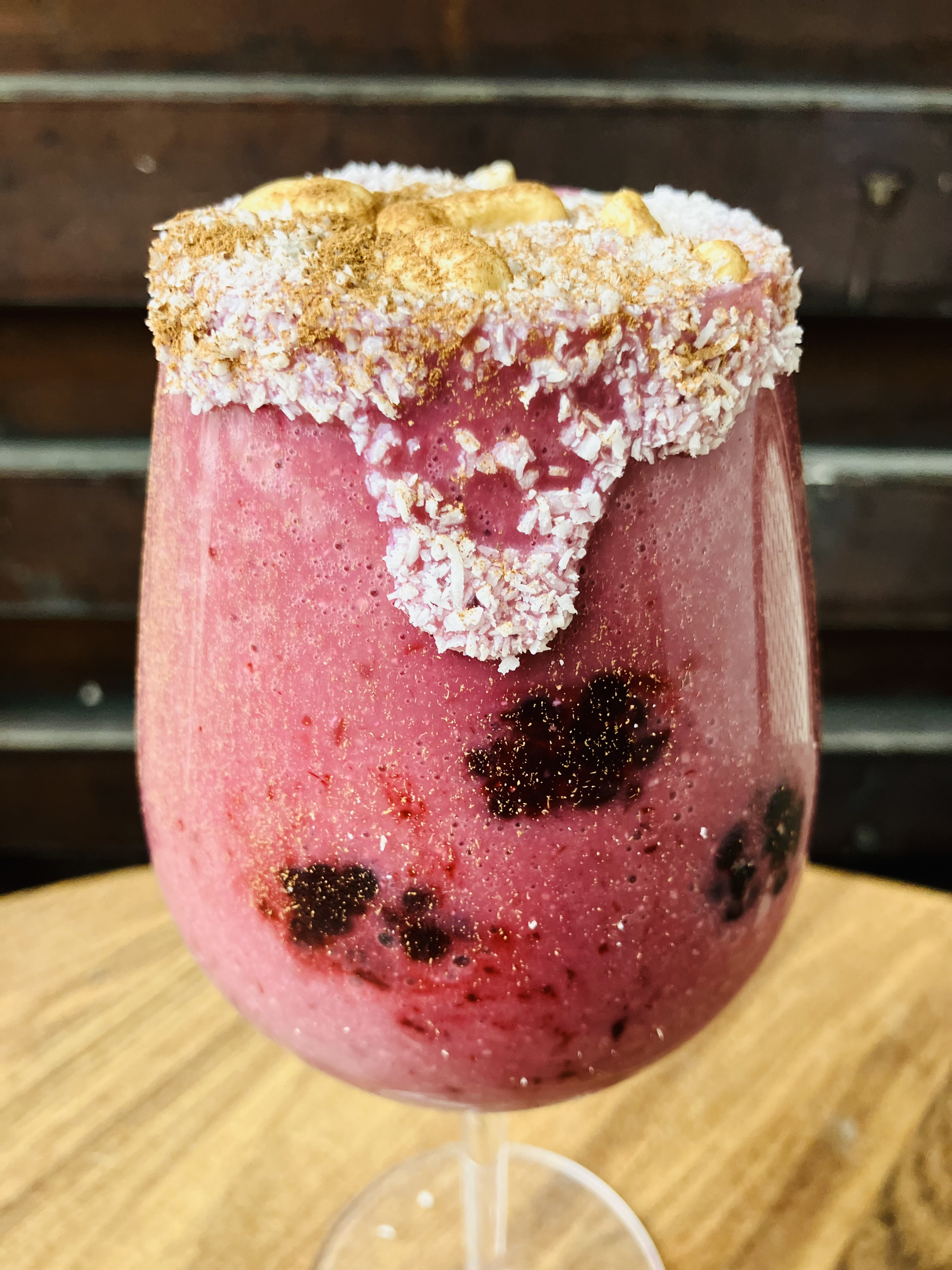 coconut flakes and cashews to decorate on top and a few berries as well.