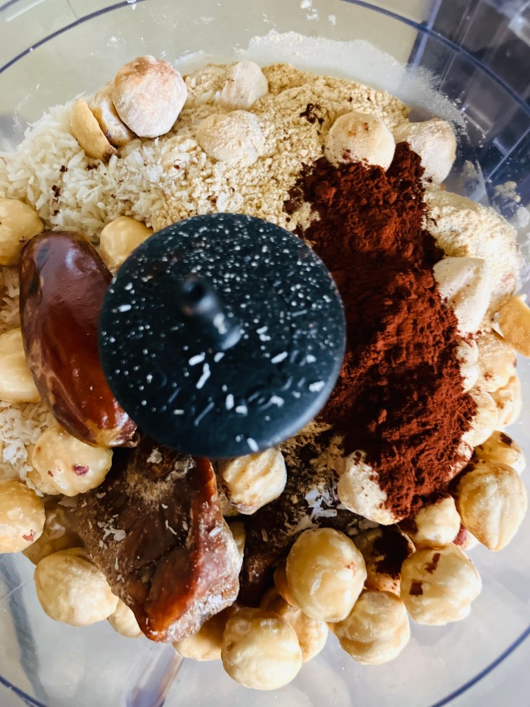 We use a food processor to mix all of the ingredients together until we get a thick and sticky consistency, which we can then spread or mix into a shape of our choices. We can either roll this mixture into small brownie balls, or we can make little squares, whichever way you personally prefer it is still going to taste amazing so just give it a go.